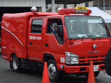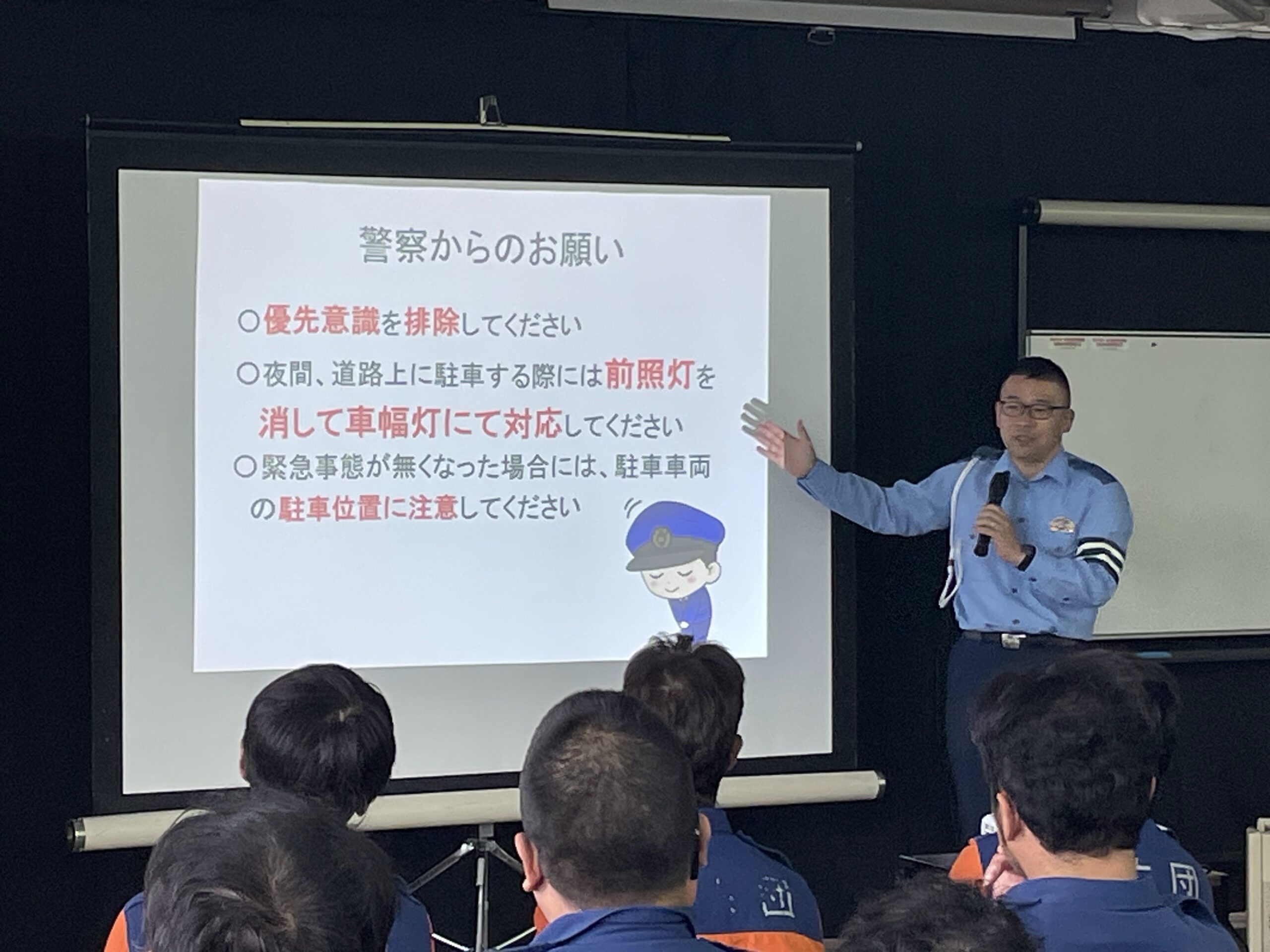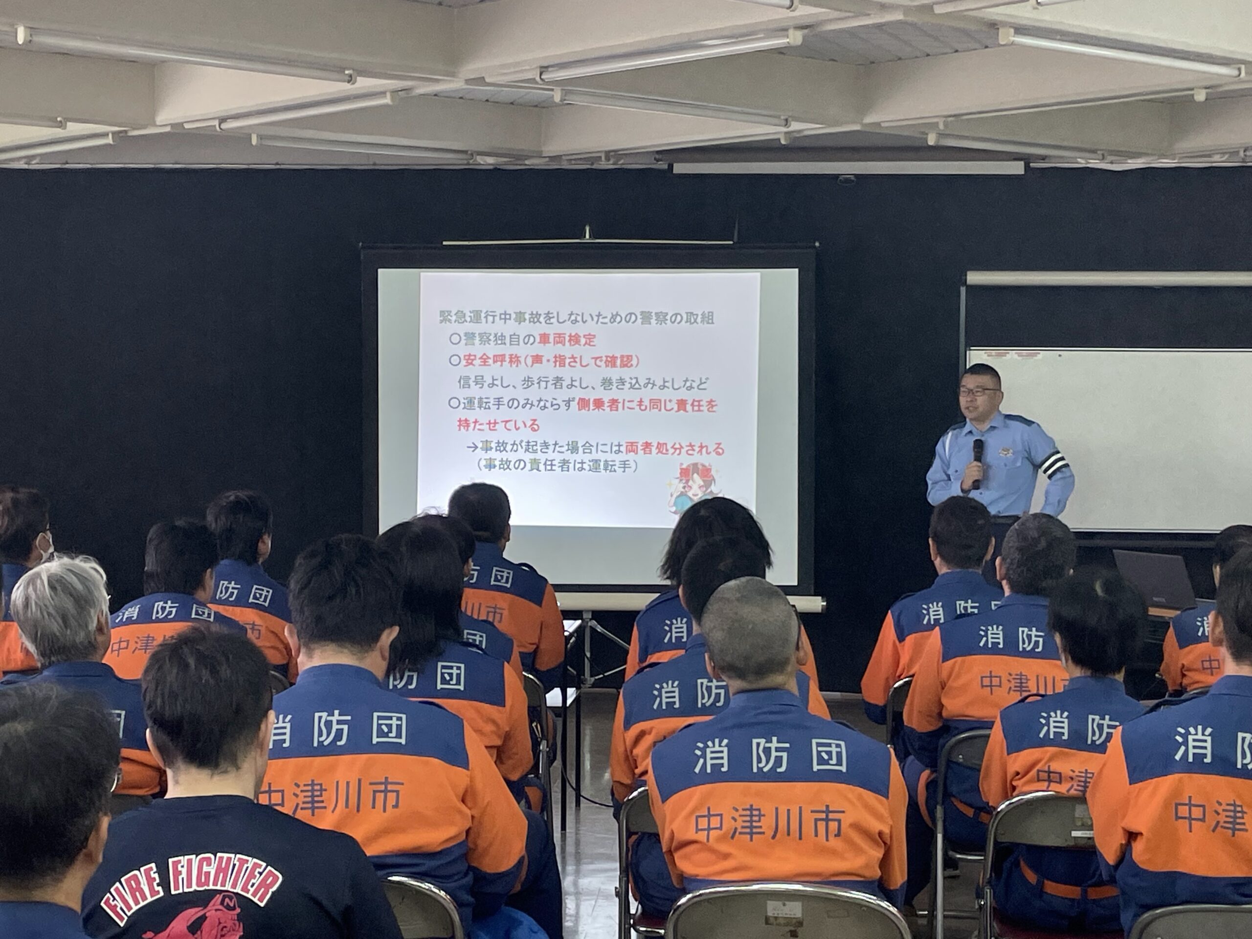 10月5日(日)消防本部にて秋季訓練が行われました。本年度の秋季訓練は消防車を使用した訓練という事で、中津川警察署交通課課長様の座学から始まりました。約1時間の座学では消防車は昼夜天候を問わず、ありとあらゆる場面で出動しなければならない。そのため、時には危険な場所に消防車を走らせなければいけない、安全には注意して運転して下さいと言う事でした。そして本日はそのような時に役に立つ訓練が行われました。