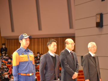 永年勤続された団員、消防職員、関係者の方々、表彰おめでとうございます。これからの益々のご活躍を期待しております。