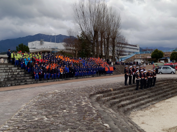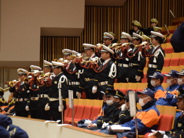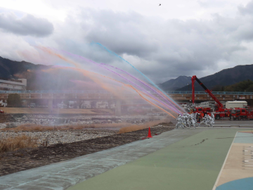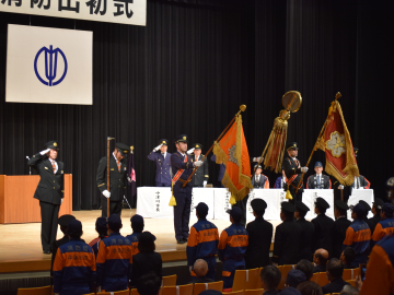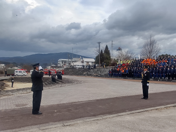当日は朝から強風が吹く中、また午後からは小雪がちらつく中でしたが、盛大に挙行されました。当日は一斉放水が久しぶりに行われ、各分団が彩り鮮やかな放水を行いました。