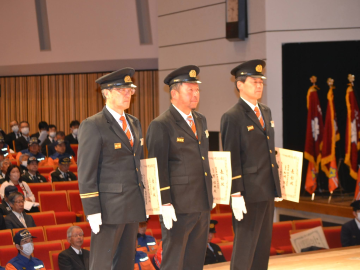 永年勤続された団員、消防職員、関係者の方々、表彰おめでとうございます。これからの益々のご活躍を期待しております。