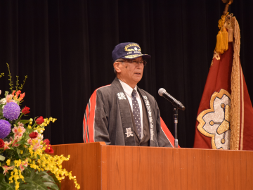その後式典を文化会館で行いました。小栗市長様による式辞のあと桂川団長訓示、表彰と移りました。