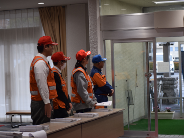 ホール入口では、NHF(Nakatsugawa Highschool Fire volunteer)の3人も駆けつけ、我々のお手伝いをしていただきました。団員、消防職員一体となり皆様を迎えました。