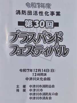 中津川市消防団からはラッパ分団、消防音楽隊、福岡分団エル・ジェ、そして中津川市内の高校からは坂下高校ギターマンドリン部、中津川工業高校吹奏部、中津高校吹奏部にご参加いただきました。残念ながら中津商業高校吹奏部は諸事情により出演を辞退されました。迫力ある演奏、高校生の元気な演奏、ありがとうございました。日頃からの練習の賜物だと痛感しております。