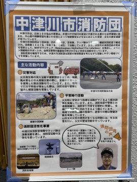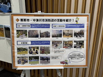 今年度で第30回を迎えるにあたり、消防団活性化事業の一つとして今回の30回目にふさわしい事業をと言う事で、ホール入口に消防団活動のパネル展示しました。数々の歴史を積み重ねてきた中津川市消防団、改めて先輩たちが頑張ってきた証しを感じました。当日は朝から天候が悪い中を多数の方がお越しくださいました。
