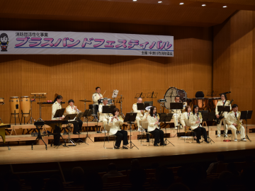 市民の方に広く消防団の活動を知っていただくことを目的として開催されたブラスバンドフェスティバル、最後の締めは消防団と高校生が一緒になっての合同演奏。
