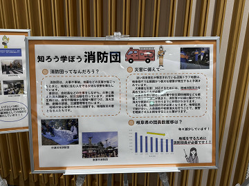 今年度で第30回を迎えるにあたり、消防団活性化事業の一つとして今回の30回目にふさわしい事業をと言う事で、ホール入口に消防団活動のパネル展示しました。数々の歴史を積み重ねてきた中津川市消防団、改めて先輩たちが頑張ってきた証しを感じました。当日は朝から天候が悪い中を多数の方がお越しくださいました。