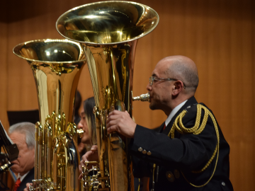 市民の方に広く消防団の活動を知っていただくことを目的として開催されたブラスバンドフェスティバル、最後の締めは消防団と高校生が一緒になっての合同演奏。