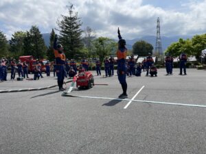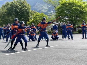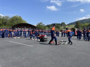 本講習会では、令和6年度の岐阜県消防操法大会に出場した福岡分団第4部による小型ポンプ操法の展示が行われました。第4部の皆さんには、日頃の訓練の成果が凝縮された大変素晴らしい展示を披露していただきました。