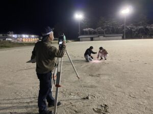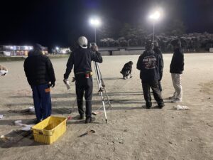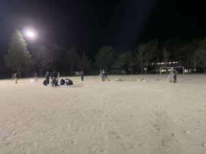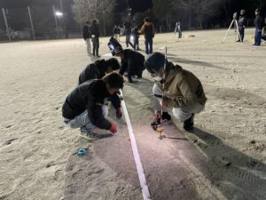夜の寒風が吹く中での作業でしたが、団員の協力により、約2時間で無事に全コースを完成させることができました。 仕事終わりでお疲れのところ、設営に参加していただいた団員の皆様、本当にお疲れ様でした。そして、ありがとうございました!