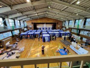 これは、実際に備蓄された防災用品を使用し避難所に宿泊するといった防災体験を経験するために企画された訓練になります。