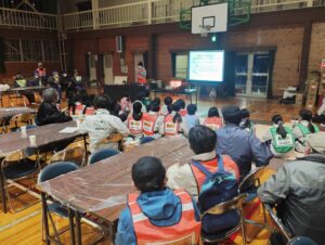 子供たちと地域の方は、今夜防災テントで一泊し明日まで体験となります。