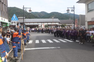 坂下分団は毎年、道中の馬の付き添いと、祭りが安全に行われるよう会場の警備を担当しています。